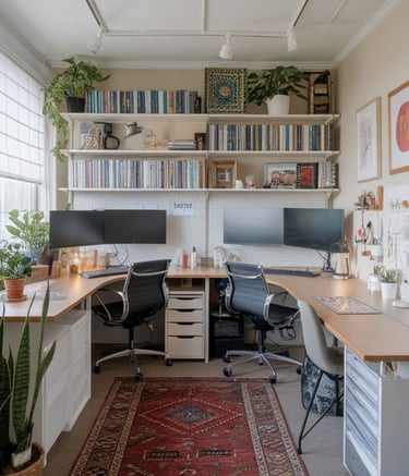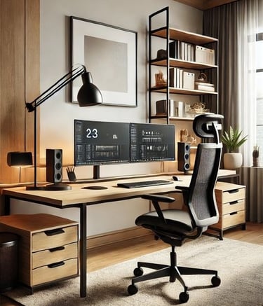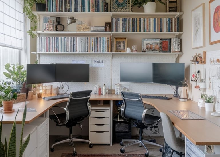 Streamlined workspace with smart storage solutions.
